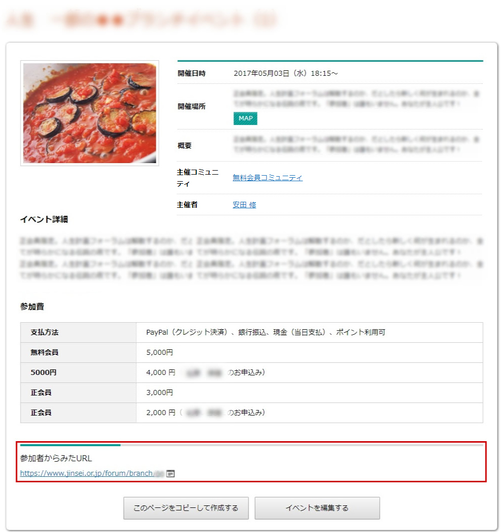 FacebookなどのSNSにイベントのURLを貼り付けることで、イベントの告知ができます。無料会員は3回まで、ビジターとしてイベントに参加できますので、ぜひ告知をして、多くの参加を集めましょう。